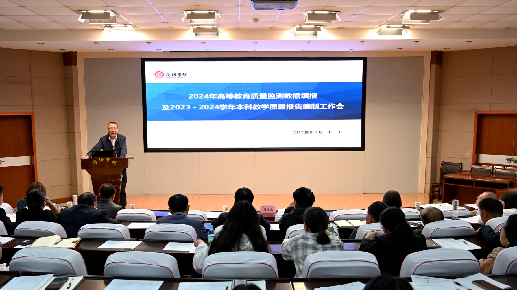 為確保2024年高等教育質(zhì)量監(jiān)測國家數(shù)據(jù)平臺數(shù)據(jù)填報及2023-2024學(xué)年本科教學(xué)質(zhì)量報告編制工作高質(zhì)量完成,10月22日下午,商洛學(xué)院召開2024年高等教育質(zhì)量監(jiān)測數(shù)據(jù)填報及2023-2024學(xué)年本科教學(xué)質(zhì)量報告編制工作會。副校長劉寶盈出席會議并講話。相關(guān)職能部門負責人,二級學(xué)院(部)相關(guān)負責人及數(shù)據(jù)填報人員等70余人參加會議。會議由督導(dǎo)與評估中心主任張曉倩主持。