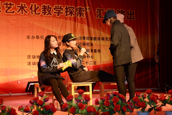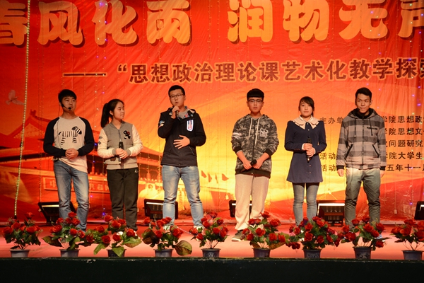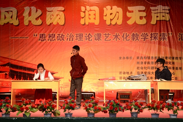 長期以來,圍繞如何不斷增強思政課的實效性,不斷改善思政課的課堂教學效果,不斷創(chuàng)新思政課的實踐教學模式,思政部全體教師認真貫徹落實《中共中央宣傳部、教育部關于進一步加強和改進高等學校思想政治理論課的意見》的有關精神,不斷加強教學方法研究,不斷優(yōu)化教學手段,為把思想政治理論課建設成為大學生真心喜愛、終身受益的課程而不懈努力,進行了全方位的探索。本次“春風化雨潤物無聲——思想政治理論課藝術化教學探索”匯報演出以“思想政治理論課生命課堂實踐體系構(gòu)建研究”、“社會主義核心價值觀視域下高校思想政治理論課實踐教學模式的創(chuàng)新與實踐研究”、“雙向案例教學法在高?!颊n’中的應用”等三個陜西省教育科學規(guī)劃課題為依托,是對我校思政課教學方法改革探索的一次有益嘗試。