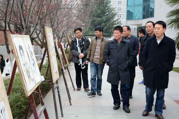 為豐富和創(chuàng)新學(xué)生工作的內(nèi)容與形式,探索藝術(shù)生思想政治教育的有效途徑,本學(xué)期來,藝術(shù)學(xué)院黨總支組織、策劃了學(xué)生主題思想教育系列活動(dòng)。12月7日,活動(dòng)成果在我校1號(hào)教學(xué)樓走廊和北院中心花園展出。校黨委副書記、副校長(zhǎng)范新會(huì),黨委副書記彭虎軍前往參觀,對(duì)藝術(shù)學(xué)院將學(xué)生創(chuàng)新實(shí)踐與思想政治教育工作結(jié)合的做法給予高度評(píng)價(jià)。黨委宣傳部、學(xué)生處、發(fā)展規(guī)劃與合作交流處、藝術(shù)學(xué)院黨總支負(fù)責(zé)人陪同參觀。