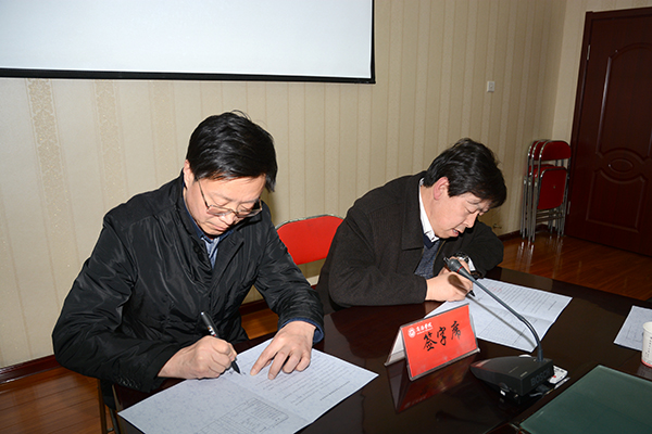 干部人事處處長高榮發(fā)、科技處處長李繼高分別就目標任務考核的重要性和任務分解指標、經費到帳情況作了詳細介紹。各二級教學單位與科技處現(xiàn)場簽訂了考核目標責任書。