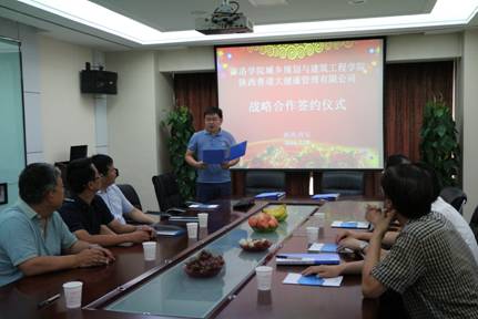 郝智山總經(jīng)理代表陜西善道大健康管理有限公司做了表態(tài)發(fā)言,首先介紹了公司的基本情況、經(jīng)營理念和近幾年取得的成績。他希望我校充分發(fā)揮技術(shù)、知識、人才優(yōu)勢,在合作研究方面取得新成果;為學(xué)生提供實習(xí)、就業(yè)崗位;同時為城鄉(xiāng)規(guī)劃與建筑工程學(xué)院在教學(xué)、科研、培訓(xùn)等方面提供一切便利條件。