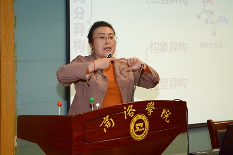 姜茹教授在示范教學(xué)中運(yùn)用直觀教具、輔助使用制作精美的課件,形象生動(dòng)地講授了《有機(jī)化學(xué)》中最抽象難懂的章節(jié)《立體化學(xué)——旋光異構(gòu)》,整個(gè)授課過程條理清楚,層次分明,重點(diǎn)突出,富有感染力。