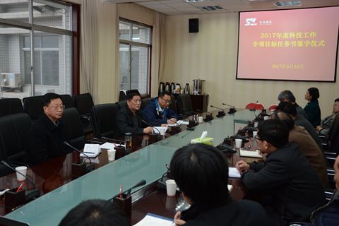 劉寶盈在講話中從經(jīng)費到賬、平臺建設、項目成果、學術活動等方面回顧總結了我校2016年科技工作情況。他指出,2017年要按照學校整體安排,在科研平臺、科研團隊、研究生聯(lián)合培養(yǎng)、高水平科研立項、科研經(jīng)費、重大科研成果和學術活動等方面取得新的突破。簽訂年度科技工作專項任務書是科技工作考核的重要環(huán)節(jié),各二級教學部門要積極落實項目任務,以科研經(jīng)費為牽引,積極爭取重大科研項目的立項、完成及科技成果轉(zhuǎn)化,促進我??萍脊ぷ魉皆偕闲屡_階。