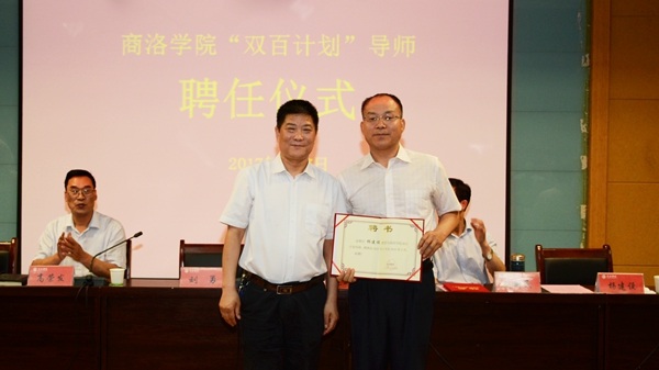 儀式上,范校長為劉新民教授、楊建設(shè)教授頒發(fā)了“雙百計劃”導(dǎo)師聘書。