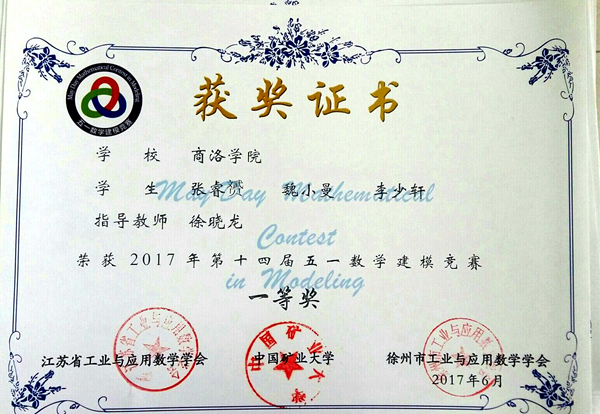 近日,由江蘇省工業(yè)與應(yīng)用數(shù)學(xué)學(xué)會(huì)主辦的第十四屆五一數(shù)學(xué)建模競(jìng)賽結(jié)果揭曉,我校共獲得一等獎(jiǎng)1項(xiàng),二等獎(jiǎng)1項(xiàng),三等獎(jiǎng)3項(xiàng),我校被評(píng)為“優(yōu)秀組織單位”。這是我校在此項(xiàng)賽事中首次獲得一等獎(jiǎng)。