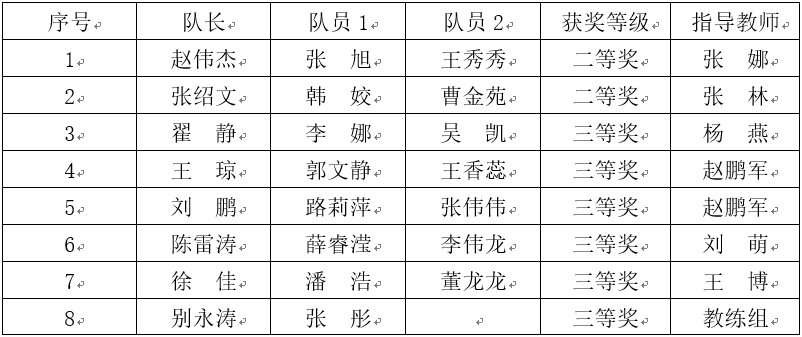 近年來,我校大學(xué)生數(shù)學(xué)建模競賽發(fā)展勢頭強勁,在全國大學(xué)生數(shù)學(xué)建模競賽、電工杯數(shù)學(xué)建模競賽和五一數(shù)學(xué)建模聯(lián)賽中的比賽成績逐年提高。通過這一類競賽使學(xué)生體驗了應(yīng)用數(shù)學(xué)解決實際問題的過程,提高了學(xué)生建立數(shù)學(xué)模型和運用計算機技術(shù)的綜合水平,培養(yǎng)了學(xué)生的創(chuàng)新意識、實踐能力和團隊協(xié)作精神。