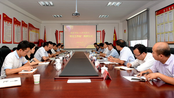 范新會、景小青共同為“博士工作站”揭牌。劉寶盈對我校與山陽高新區(qū)建立博士工作站做了詳細安排,冀博做總結講話,崔新成致歡迎詞,我校教師陳垚博士做了表態(tài)發(fā)言。