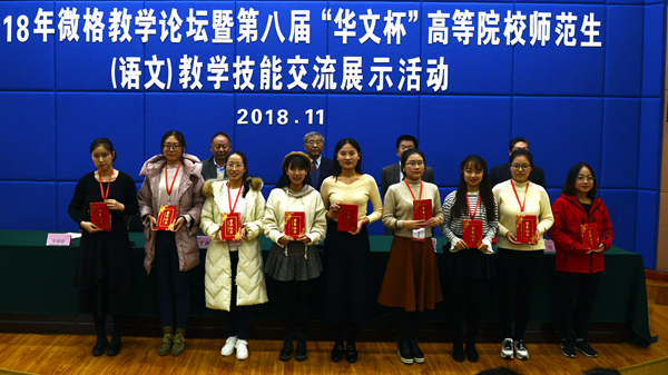 11月10日至11日,由中國教育技術(shù)協(xié)會(huì)微格教學(xué)專業(yè)委員會(huì)和我校主辦的2018年全國微格教學(xué)論壇暨第八屆“華文杯”高等院校師范生(語文)教學(xué)技能競賽順利舉行。來自全國70多所高校的410名參賽選手參加了大賽。