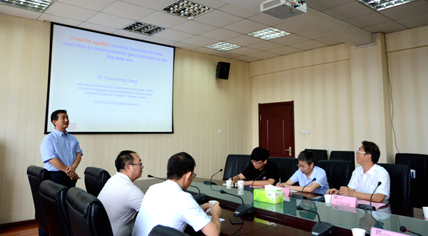 座談會后,Dr. Zhang Chaosheng以《大數(shù)據(jù)時代基于機器學(xué)習(xí)的地球化學(xué)變量的空間分析》為題作了學(xué)術(shù)報告,Prof. Alecos Demetriades以《采樣和采樣設(shè)計》《如何撰寫英文論文》為題作了兩場學(xué)術(shù)報告。報告后,地理專業(yè)教師們圍繞大數(shù)據(jù)處理、機器學(xué)習(xí)、空間變異、地球化學(xué)研究與采樣方法、論文寫作等方面與兩位專家進行了深入交流,報告會氣氛活躍,效果良好。