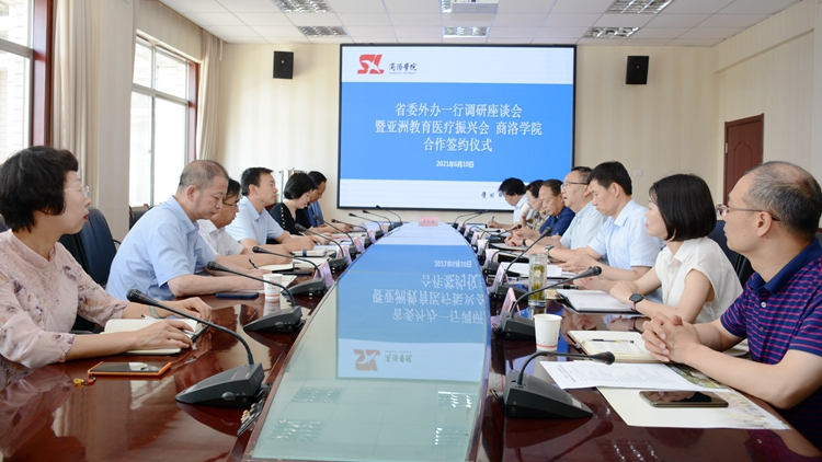 6月10日,中共陜西省委外事工作委員會(huì)辦公室二級(jí)巡視員姬文魁,陜西省人民對(duì)外友好協(xié)會(huì)亞非部部長(zhǎng)李鳳麗、商洛市歸國(guó)華僑聯(lián)合會(huì)黨組書記劉彥鋒、亞洲教育醫(yī)療振興會(huì)會(huì)長(zhǎng)李俊峰、商洛市委辦紀(jì)檢監(jiān)察組組長(zhǎng)何筠一行來校調(diào)研座談。黨委書記龍治剛出席座談會(huì),黨委副書記劉勇代表學(xué)校與亞洲教育醫(yī)療振興會(huì)簽署了友好合作協(xié)議書。