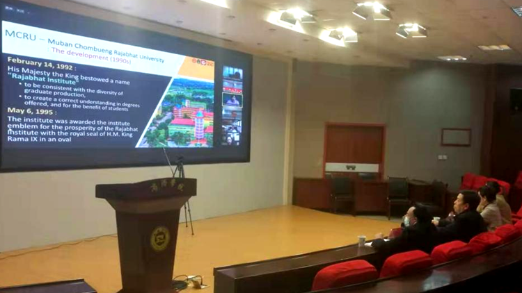 為助力我校及毗鄰地區(qū)學(xué)子在境外知名大學(xué)繼續(xù)提升學(xué)歷水平的迫切需求,進(jìn)一步擴(kuò)大繼續(xù)教育學(xué)院與國際知名大學(xué)合作的深度。3月29日,我校與泰國國立莊棚皇家大學(xué)召開視頻會(huì)議,就聯(lián)合培養(yǎng)碩士等合作項(xiàng)目進(jìn)行了交流。國際合作與交流處處長張建芳、繼續(xù)教育學(xué)院院長樊景博及相關(guān)工作人員參加了會(huì)議。