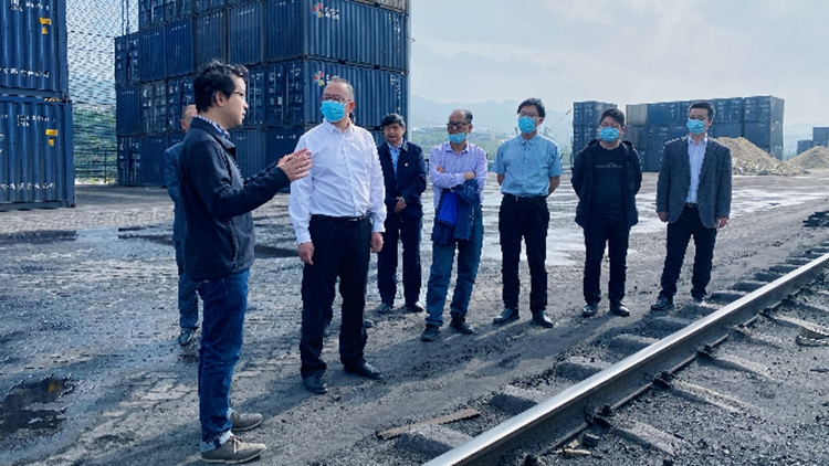 郭瑾一行在商洛陸港實業(yè)集團有限公司總經理譚震、集團黨支部書記李開旺、副總經理張同謙等人陪同下參觀了公司貨場,觀看了公司形象宣傳片。