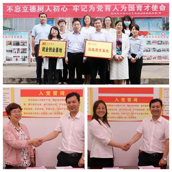 劉麥霞、魯綿茸分別代表學校與合作單位簽訂了創(chuàng)業(yè)就業(yè)基地協(xié)議和教育實習基地協(xié)議。