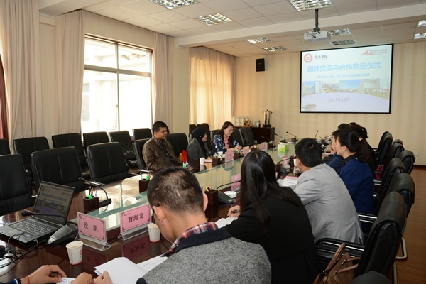 10月19日,應(yīng)我校發(fā)展規(guī)劃與合作交流處及經(jīng)濟與管理學院邀請,馬來西亞吉隆坡建設(shè)大學經(jīng)濟與管理學院卡瑪老師來我校交流講學。這是繼我校與馬來西亞吉隆坡建設(shè)大學簽署合作備忘錄,派遣交流學生后,兩校之間的又一項深度合作。我校為卡瑪老師舉辦了歡迎儀式,教務(wù)處、經(jīng)濟與管理學院、發(fā)展規(guī)劃與合作交流處相關(guān)負責人及師生代表出席了歡迎儀式。