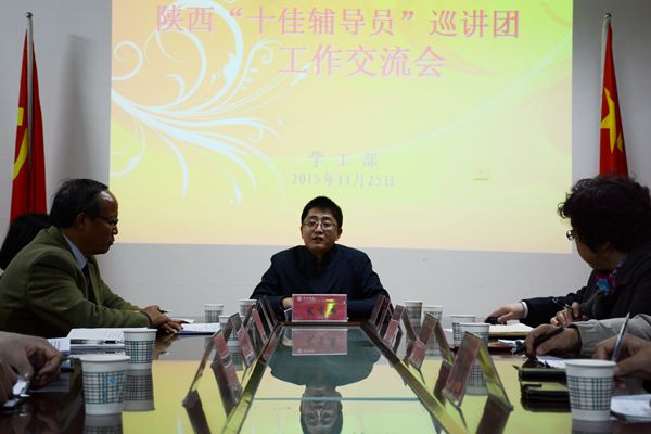 11月25日,陜西省“十佳輔導員”巡講團成員顧蓉、楊紅濤來我校開展宣講交流活動。校內(nèi)各二級學院黨總支負責人及輔導員代表參加會議?;顒佑蓪W工部部長石啟英主持。