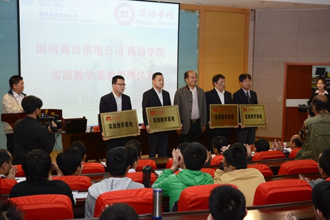為深化校企合作,加快應用型專業(yè)建設,深入實施根植地方行動計劃,5月25日,我校在與國網(wǎng)商洛供電公司前期合作的基礎上,舉辦了校企共建專業(yè)座談會暨實踐教育基地授牌儀式。校黨委書記、校長劉建林為國網(wǎng)商洛供電公司、洛南分公司、山陽分公司、丹鳳分公司4個實踐教育基地授牌。國網(wǎng)商洛供電公司總經(jīng)理、黨委副書記李琦,公司黨委書記、副總經(jīng)理陳飛出席儀式。校黨委副書記、副校長范新會主持授牌儀式。
