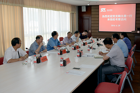 6月29日,法國法中企業(yè)家協(xié)會主席黨克勤、陜西商會副會長高錫國、商洛市決咨委主任唐慶華、商洛市決咨委副主任王化行、商洛市決咨委副主任朱軒堂一行人來我??疾旖涣?。副校長劉寶盈陪同考察并出席座談會。