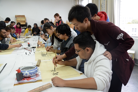 馬來(lái)西亞吉隆坡建設(shè)大學(xué)師生還參加了我校科技文化藝術(shù)節(jié)開幕式,共同觀看航模表演,并聽取了我校創(chuàng)建一流應(yīng)用型本科院校系列學(xué)術(shù)報(bào)告。交流團(tuán)學(xué)生還在我校教師的指導(dǎo)下學(xué)習(xí)剪紙和中國(guó)書法,表現(xiàn)出了濃厚的興趣,并通過(guò)學(xué)習(xí),完成了自己的作品,寫出了“我愛中國(guó)”、“我愛商洛學(xué)院”等書法作品。