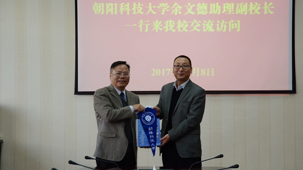 余文德介紹了朝陽科技大學(xué)的辦學(xué)績效、學(xué)科專業(yè)特色、課程設(shè)置、校企合作及在大陸招生情況。余文德表示,希望兩校深化合作,在學(xué)生交流、師資培訓(xùn)、科學(xué)研究等方面加強交流互動,并表示愿意將繼續(xù)支持我校相關(guān)專業(yè)、學(xué)科建設(shè)。