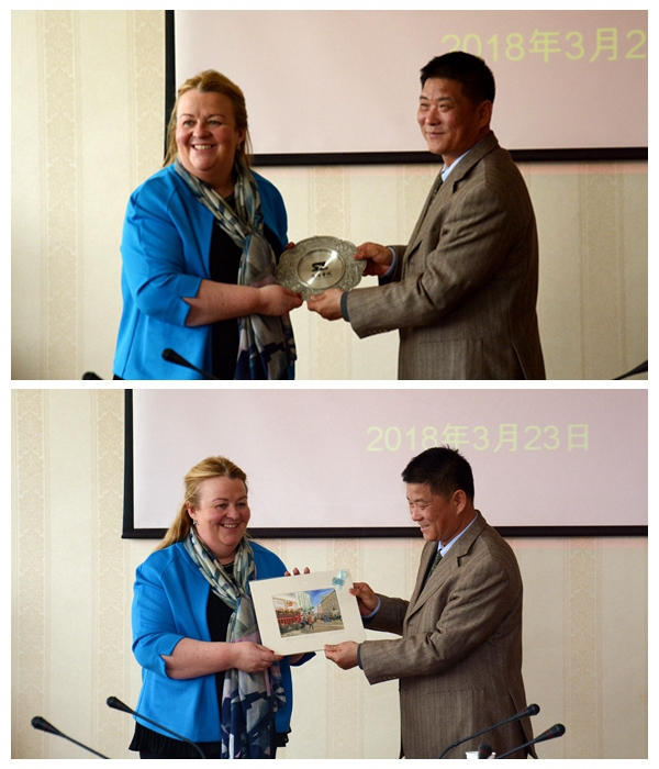 座談會上,范新會代表學(xué)校對凱特?努恩副校長的到來表示歡迎,并向她介紹了我校的地域特點、辦學(xué)理念、發(fā)展歷程、院系構(gòu)成等基本情況。范新會表示,去年在愛爾蘭訪問學(xué)習(xí)期間,高威梅奧理工學(xué)院給他留下了深刻的印象,學(xué)院先進的校企合作方法、人才培養(yǎng)理念等非常值得我校學(xué)習(xí)借鑒,希望雙方在簽署協(xié)議的基礎(chǔ)上持續(xù)開展更多具體、深入的合作項目,取得更多“雙贏”成果。