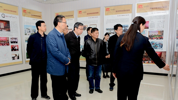 在龍治剛、范新會(huì)的陪同下,陳平社、曹慶年一行考察了我校校園環(huán)境,實(shí)地察看了學(xué)校特色展廳和重點(diǎn)實(shí)驗(yàn)室。隨后,龍治剛主持召開(kāi)座談會(huì),雙方就應(yīng)用型本科院校建設(shè)、本科教學(xué)工作合格評(píng)估等內(nèi)容進(jìn)行了座談交流。