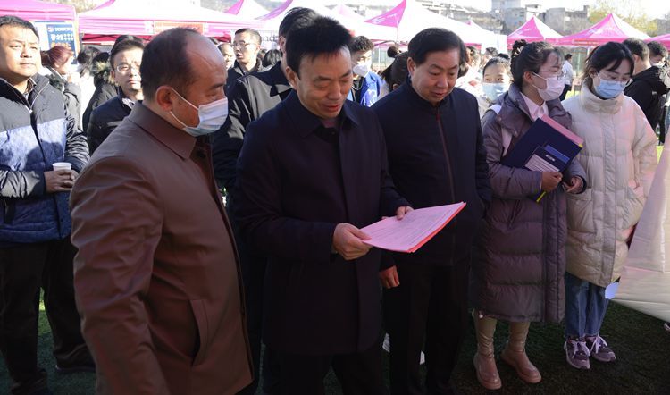 為切實做好學(xué)生就業(yè)工作,全力促進我校2022屆畢業(yè)生高質(zhì)量就業(yè),12月4日,由陜西省教育廳主辦,商洛市人力資源和社會保障局、商洛市人才交流服務(wù)中心協(xié)辦,我校承辦的2022屆畢業(yè)生冬季綜合類校園招聘會在北新街體育場舉辦。校黨委副書記彭虎軍、商洛市人力資源和社會保障局相關(guān)負(fù)責(zé)人深入招聘會現(xiàn)場指導(dǎo)工作。招聘會全程采取“錯時分區(qū)”入場,嚴(yán)格落實常態(tài)化疫情防控措施。