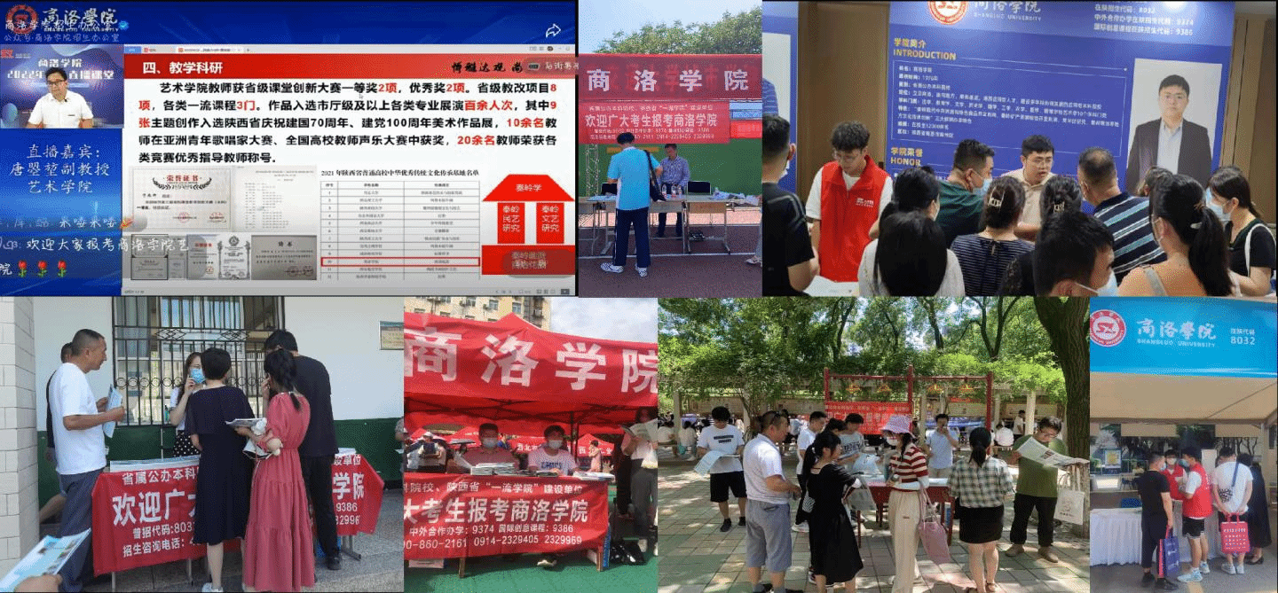 為做好招生宣傳工作,學(xué)校召開(kāi)了2022年招生宣傳工作專題會(huì)議,制定印發(fā)了《商洛學(xué)院2022年招生宣傳工作實(shí)施方案》,對(duì)2022年招生工作進(jìn)行全面安排部署。教務(wù)處統(tǒng)籌協(xié)調(diào),各部門、二級(jí)學(xué)院積極配合,招生辦公室制作招生宣傳手冊(cè)和各類性的招生宣傳簡(jiǎn)章,并進(jìn)行學(xué)院直播和專業(yè)直播40余場(chǎng)。學(xué)校在“陜西廣播電視臺(tái)新聞廣播《1066教育直通車》、西安都市廣播《教育百分百》、“陜西省教育廳招辦主任訪談直播”開(kāi)展招生訪談,參加生源中學(xué)校園開(kāi)放日近20余場(chǎng),應(yīng)邀參加西安外事學(xué)院招生咨詢會(huì)、陜西省第二屆志愿填報(bào)咨詢會(huì)和陜西省本專科招生咨詢會(huì)等。通過(guò)招生辦公室微信公眾號(hào)發(fā)布招生宣傳相關(guān)推文一百余篇,招生辦公室抖音號(hào)、視頻號(hào)發(fā)布招生宣傳短視頻三十多條,學(xué)校各多媒體矩陣平臺(tái)相繼轉(zhuǎn)發(fā)。在生源競(jìng)爭(zhēng)日趨激烈、全省計(jì)劃規(guī)模和結(jié)構(gòu)基本穩(wěn)定的形勢(shì)下,我校采取多渠道、全方位的招生宣傳工作,為完成招生計(jì)劃和實(shí)現(xiàn)我校招生工作“雙提高”奠定堅(jiān)實(shí)基礎(chǔ)。