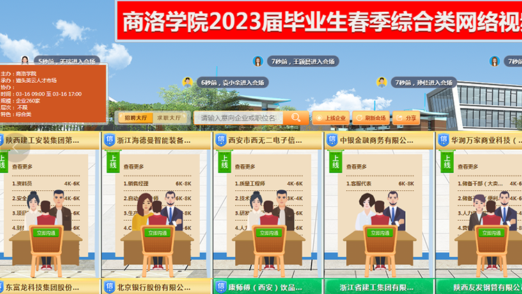 本次招聘會是我校2023屆畢業(yè)生“春季促就業(yè)專項行動”開展以來舉辦的第一場網(wǎng)絡(luò)視頻招聘會,旨在通過深度對接就業(yè)市場,積極聯(lián)系就業(yè)單位,持續(xù)深挖就業(yè)資源,千方百計確保畢業(yè)生充分就業(yè)。下一步,學校將繼續(xù)圍繞“商洛學院2023屆畢業(yè)生春季促就業(yè)工作行動”,積極尋找新的就業(yè)“增長極”、聯(lián)系新的就業(yè)“客戶端”,促進畢業(yè)生更加充分、更高質(zhì)量就業(yè)。