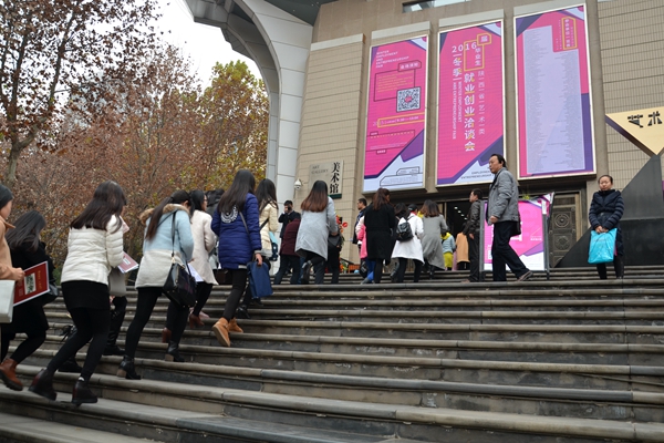 11月28日,由陜西省教育廳主辦,西安美術(shù)學院承辦,我校及9所高校聯(lián)辦的陜西高校藝術(shù)類畢業(yè)生就業(yè)創(chuàng)業(yè)洽談會在西安美術(shù)學院美術(shù)館成功舉辦。省內(nèi)外180多家用人單位到會招聘畢業(yè)生。我校藝術(shù)學院美術(shù)學、音樂學、藝術(shù)設(shè)計、音樂教育4個專業(yè)部分畢業(yè)生參加了洽談會。