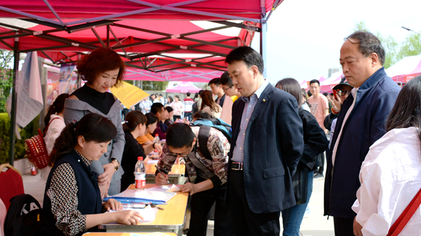 3月31日,由陜西省教育廳主辦,商洛市人力資源和社會(huì)保障局協(xié)辦,我校與商洛市人才交流服務(wù)中心承辦的2018屆畢業(yè)生春季綜合類校園招聘會(huì)在我校舉辦。校黨委副書記彭虎軍、商洛市人力資源和社會(huì)保障局和商洛市人才交流服務(wù)中心領(lǐng)導(dǎo)視察指導(dǎo)招聘會(huì)工作,各有關(guān)職能部門負(fù)責(zé)人、二級(jí)學(xué)院黨總支書記、學(xué)工辦主任及畢業(yè)班輔導(dǎo)員參與招聘會(huì)的各項(xiàng)指導(dǎo)服務(wù)工作。