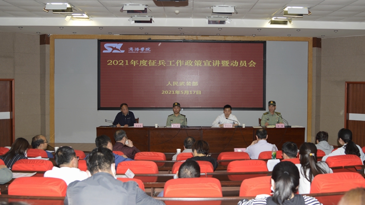 5月17日,我校舉辦2021年征兵工作政策宣講暨動(dòng)員會(huì)。校黨委副書記彭虎軍、商洛軍分區(qū)動(dòng)員處處長周武強(qiáng)上校、商州區(qū)人武部陳強(qiáng)中校出席會(huì)議。我校各二級(jí)學(xué)院黨總支書記、學(xué)工辦主任及全體輔導(dǎo)員共60余人參加會(huì)議。會(huì)議由學(xué)生處負(fù)責(zé)人主持。