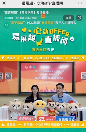 為充分搶抓畢業(yè)生求職關(guān)鍵期,鞏固“訪企拓崗”促就業(yè)專項行動成果,5月10日下午,共青團陜西省委、陜西省青年就業(yè)創(chuàng)業(yè)服務指導中心與我校聯(lián)合舉辦2022年陜西省青年人才招聘會暨“千校萬崗·就業(yè)有位來”—商洛學院專場雙選會。學生處負責人及有關(guān)工作人員參加了直播帶崗位現(xiàn)場活動。