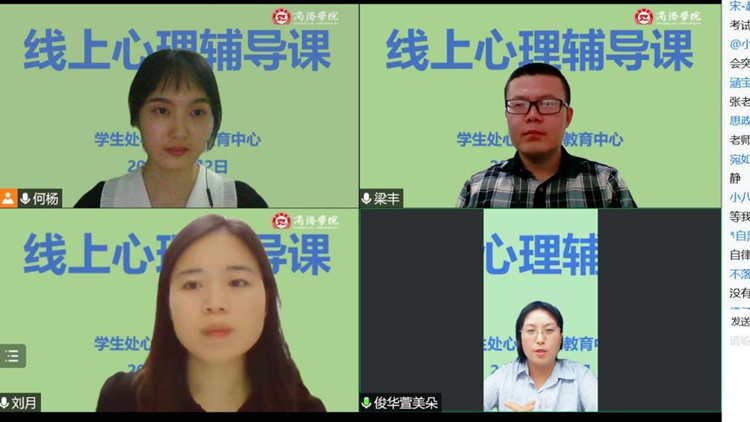 線上講解,專業(yè)輔導(dǎo)。9月2日,健康學(xué)院副教授梁豐、生物學(xué)院教師張俊華和學(xué)生處教師劉月共同為廣大學(xué)子開展了線上心理輔導(dǎo)課,為同學(xué)們講解了居家學(xué)習(xí)期間如何做好時(shí)間管理、情緒管理和新學(xué)期心理建設(shè)等心理知識(shí),同學(xué)們積極發(fā)言,踴躍提問,三位老師針對(duì)同學(xué)們的問題和困擾給予了專業(yè)性回復(fù),并結(jié)合實(shí)際情況給出相應(yīng)的調(diào)適建議。聽課學(xué)生們紛紛表示會(huì)“積極應(yīng)對(duì)”“相信美好”“對(duì)未來充滿期待”。