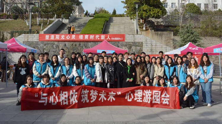 各二級學院積極響應,精心策劃開展了形式多樣的心理健康教育宣傳季系列活動。馬克思主義學院帶領(lǐng)學生觀看心理短片《我有一只黑狗,他的名字叫做抑郁》,引導學生正確認識自我、關(guān)愛他人。人文學院舉辦心理健康主題演講活動,提高了學生對心理健康問題的重視程度,強化了大學生關(guān)注心理健康的意識。電信學院通過座談交流、心理團輔和心理委員培訓等方式為學生育心賦能。生物學院通過開展心理主題班會、心理漫畫和團體輔導等系列活動,全方位幫助學生加強自我認識,提升心理素質(zhì)。建工學院以游戲體驗的方式引導學生感受團隊力量,悅納自己,欣賞他人。經(jīng)管學院創(chuàng)建“心理有約”3C工作室、開展心理電影展播與賞析活動,合力幫扶學生陽光健康成長,引導大學生以和諧健康的心態(tài)面對美麗人生。數(shù)計學院、化材學院、藝術(shù)學院和健康學院細致安排部署宣傳季相關(guān)工作,引領(lǐng)學生一起重溫“325善愛我”誓詞并莊重簽名,抒發(fā)學生對自我的關(guān)愛,號召學生關(guān)注心理健康。