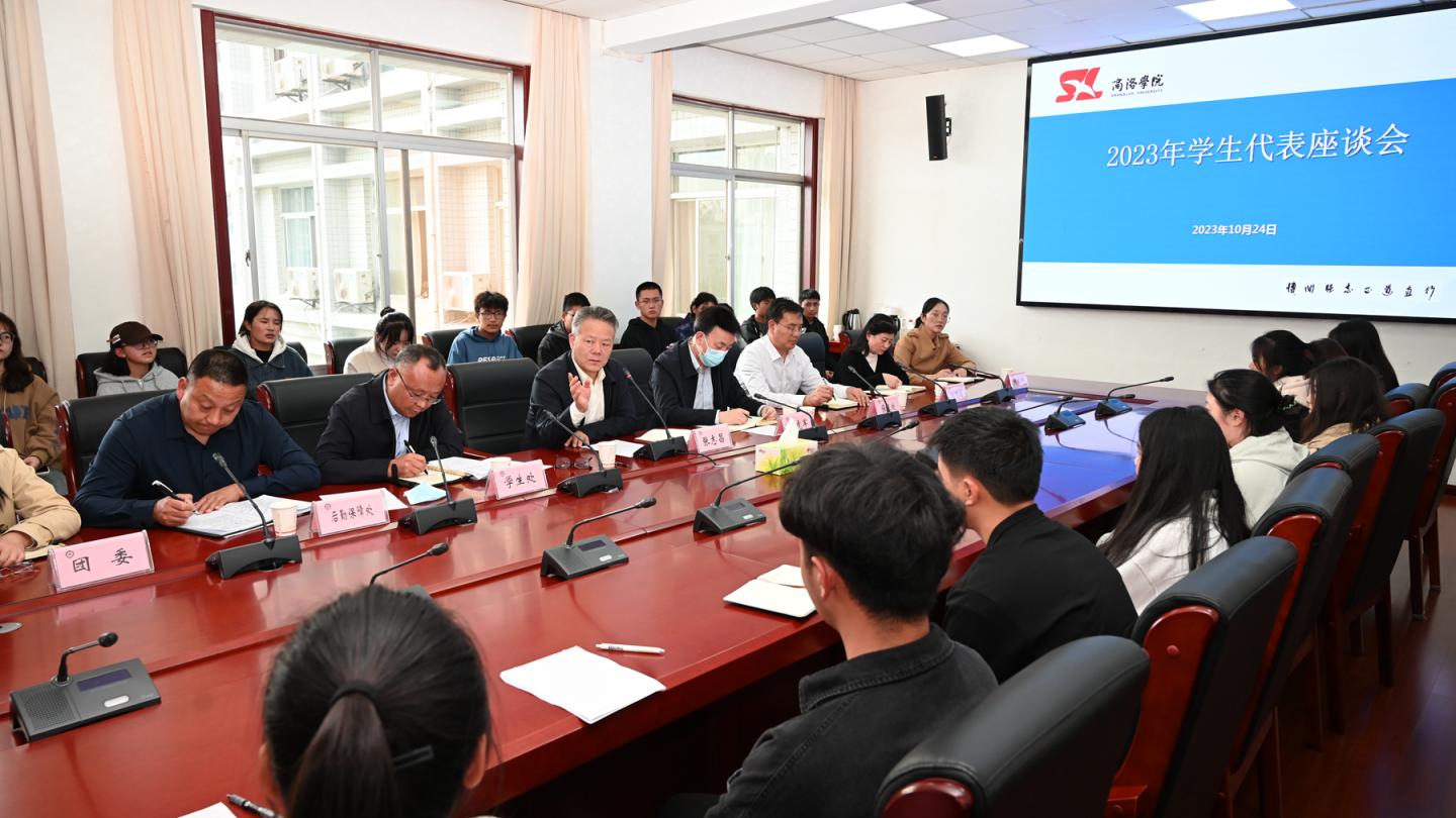 10月24日下午,我校召開2023年學生代表座談會。校黨委書記張志昌,黨委副書記彭虎軍與40名學生代表進行面對面座談,聽取廣大學生對學校工作意見與建議。統(tǒng)戰(zhàn)部、學工部、保衛(wèi)處、團委、教務處、后勤保障處、圖書館等部門負責人參加座談。會議由學生處處長李彥廣主持。