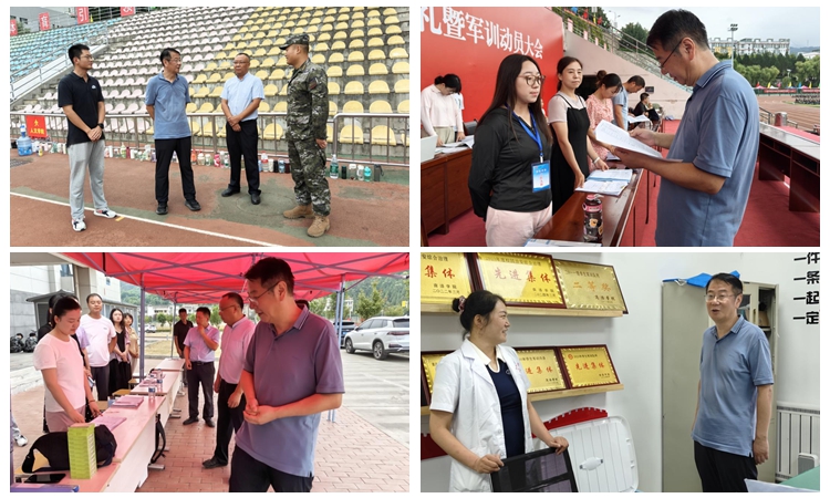 隨后,王浩來到各學院現(xiàn)場辦公處和校醫(yī)院臨時醫(yī)療點,與新生輔導員和醫(yī)務工作人員親切交流,現(xiàn)場翻閱了相關資料,并詳細了解了輔導員現(xiàn)場工作情況、學生軍訓服務保障情況與醫(yī)療工作開展情況。他叮囑全體新生輔導員要密切關注學生的身心健康,充分做好保障服務,確保軍訓活動安全有序進行。
