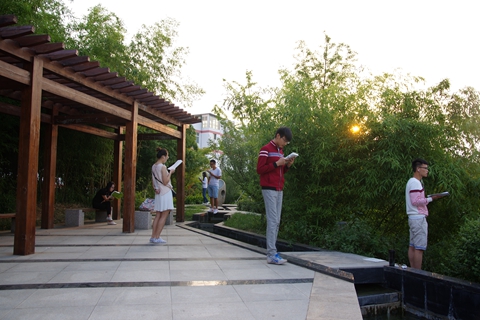 一日之計在于晨,圖書館前、莘子苑中,校園各處都有晨讀學生的身影,優(yōu)美的環(huán)境中處處傳來朗朗的誦讀聲。大家手捧書卷,或坐或站,或來回踱步,或高聲朗誦,或念念有詞。也有同學自發(fā)組成晨讀小組,集體溫習。在大好的時光里,我校學子正在以良好的精神風貌迎接新學期的到來。