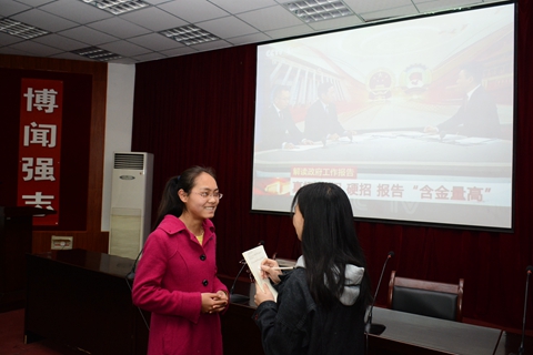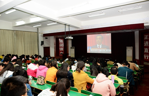 3月3日和3月5日,政協(xié)第十二屆全國委員會第五次會議、十二屆全國人大五次會議分別在北京人民大會堂開幕。我校組織師生在報告廳集中收看了開幕式實況直播,師生們分別通過手機(jī)、網(wǎng)絡(luò)、電視、廣播等媒體積極收看收聽,對兩會精神、熱點話題進(jìn)行了學(xué)習(xí)討論。