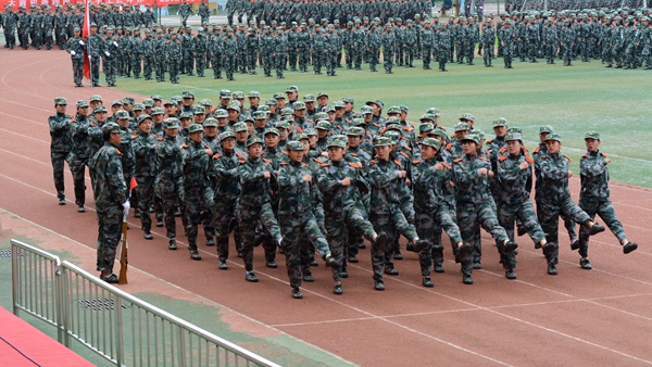 伴隨著雄壯的《中國(guó)人民解放軍進(jìn)行曲》,黨委副書記、校長(zhǎng)范新會(huì)逐一檢閱了軍訓(xùn)團(tuán)各部。全體2017級(jí)學(xué)生以連為單位,組成25個(gè)受閱方陣進(jìn)行了分列式表演。同學(xué)們口號(hào)嘹亮、氣宇軒昂、雄姿英發(fā)、步伐豪邁,以嚴(yán)整的軍容軍姿依次通過主席臺(tái),充分展現(xiàn)了當(dāng)代大學(xué)生青春向上的靚麗風(fēng)采和朝氣蓬勃的精神風(fēng)貌。