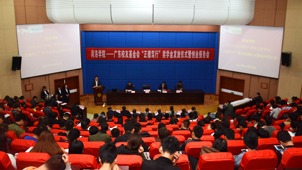 10月31日,我校舉行廣東校友基金會(huì)首屆“正德篤行”獎(jiǎng)學(xué)金發(fā)放儀式暨創(chuàng)業(yè)報(bào)告會(huì),校黨委副書記彭虎軍,我校95屆校友、廣東校友會(huì)會(huì)長、廣東綠谷凈化設(shè)備有限公司董事長李玉望出席大會(huì),學(xué)生處、校友總會(huì)辦公室、各學(xué)院黨總支負(fù)責(zé)人,學(xué)工辦主任、全體輔導(dǎo)員、學(xué)生代表共400余人參加會(huì)議,大會(huì)由學(xué)生處處長石啟英主持。