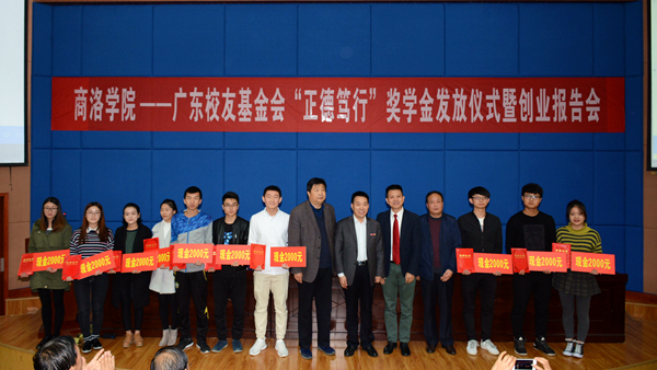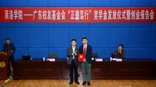 李玉望介紹了“正德篤行”獎(jiǎng)學(xué)金設(shè)立的相關(guān)情況,并表示自己作為廣東校友基金會(huì)的代表、作為獎(jiǎng)學(xué)金設(shè)立方,為獲獎(jiǎng)學(xué)生頒發(fā)獎(jiǎng)金證書,就是要將“商洛學(xué)院精神”傳承下去,讓每一名商洛學(xué)院學(xué)子都有獲得感、存在感、榮譽(yù)感,希望學(xué)弟學(xué)妹們樹立遠(yuǎn)大目標(biāo),努力回饋社會(huì),樹立擔(dān)當(dāng)奉獻(xiàn)意識(shí),為今后的成才成功奠定良好基礎(chǔ)。