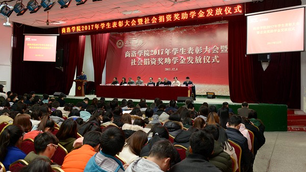 12月6日,我校舉行2017年學(xué)生表彰大會暨社會捐資獎助學(xué)金發(fā)放儀式。黨委書記龍治剛、黨委副書記彭虎軍,陜西省電力公司對外聯(lián)絡(luò)部品牌處處長王朝峰、商洛供電局局長李琦、中國聯(lián)通商洛分公司總經(jīng)理陳鍇、商洛市郵政分公司副總經(jīng)理周永春、中國電信商洛分公司副總經(jīng)理胡萬社、陜西森弗天然制品有限公司副總經(jīng)理南文清,中國移動商洛分公司黨委書記、總經(jīng)理王勁等出席。大會由學(xué)工部部長石啟英主持。