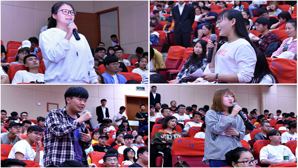 在交流互動環(huán)節(jié)中,同學們熱情高漲,紛紛就自己在成長、就業(yè)、創(chuàng)業(yè)等方面遇到的困惑提問,報告團的成員進行了耐心細致的解答并號召當代青年應(yīng)不辱使命、銳意進取、扎根基層、無私奉獻。
