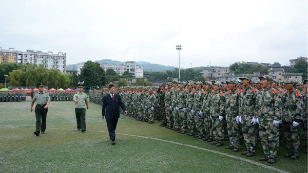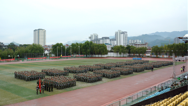 汗水書寫青春,磨練見證成長。9月20日,我校隆重舉行2018級學(xué)生軍訓(xùn)會操暨總結(jié)大會,檢閱2018級學(xué)生軍訓(xùn)成果,并對軍訓(xùn)中表現(xiàn)突出的先進(jìn)集體與先進(jìn)個人進(jìn)行表彰。校領(lǐng)導(dǎo)龍治剛、范新會、魏書堂、劉寶盈、劉勇,中國人民武警部隊商洛支隊副參謀長、軍訓(xùn)團(tuán)團(tuán)長呂喆少校,中國人民武警部隊商洛支隊執(zhí)勤一大隊隊長郭偉少校出席大會。各二級學(xué)院黨政主要負(fù)責(zé)人、有關(guān)職能部門負(fù)責(zé)人、全體2018級學(xué)生及輔導(dǎo)員參加了大會。大會由黨委副書記彭虎軍主持。