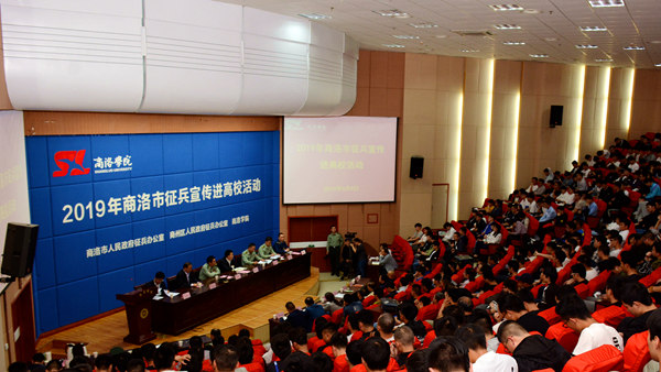 5月9日,2019年商洛市征兵宣傳進(jìn)高?;顒?dòng)在我校舉行。校黨委副書(shū)記彭虎軍,商洛軍分區(qū)副司令員李水龍大校、動(dòng)員處處長(zhǎng)周武強(qiáng),商州區(qū)人民武裝部部長(zhǎng)曹建明上校出席活動(dòng)。商洛市、商州區(qū)人民政府征兵辦公室及市退役軍人事務(wù)局有關(guān)領(lǐng)導(dǎo),我校學(xué)生處負(fù)責(zé)人,各學(xué)院黨總支書(shū)記、學(xué)工辦主任,全體輔導(dǎo)員、學(xué)生代表約500人參加了活動(dòng)?;顒?dòng)由周武強(qiáng)主持。