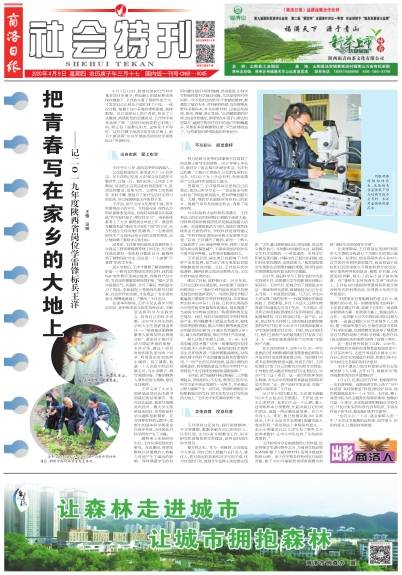 4月9日,《商洛日報(bào)》(社會(huì)特刊)在頭版以整版版面專題報(bào)道了2019年度陜西省崗位學(xué)雷鋒標(biāo)兵——我校青年教師王洋在商洛大地上書寫青春,用自己的專業(yè)和科研特長助推商洛經(jīng)濟(jì)發(fā)展的先進(jìn)事跡。報(bào)道全文如下: