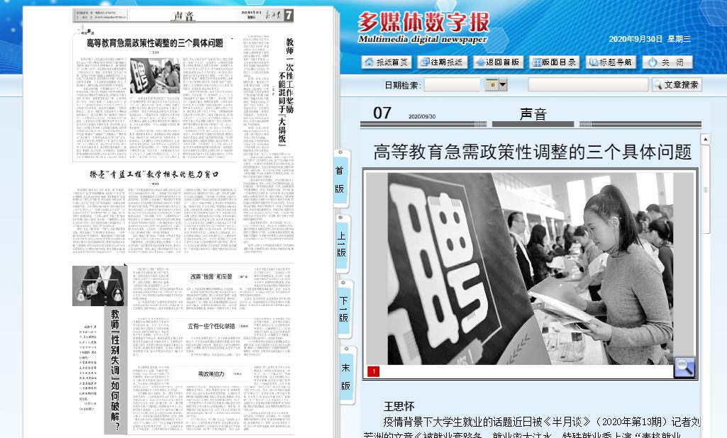 陜西高校教學(xué)名師、商洛市名師、我校馬克思主義學(xué)院教授王思懷在《教師報》2020年9月30日理論版面頭條位置發(fā)表署名文章,直面高等教育就業(yè)率、獎助學(xué)金、學(xué)業(yè)縮水問題,全文如下: