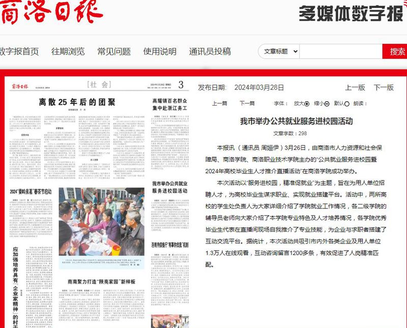 商洛日?qǐng)?bào):我市舉辦公共就業(yè)服務(wù)進(jìn)校園活動(dòng)