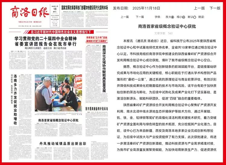 本報訊 (通訊員 陳俞彤)近日,省科技廳公布2025年度陜西省概念驗證中心和中試基地擇優(yōu)支持名單,全省共10家單位通過概念驗證中心認定。市科技局組織商洛學(xué)院申報建設(shè)的陜西省秦嶺礦產(chǎn)資源綜合開發(fā)利用概念驗證中心成功獲批,填補了我市省級概念驗證中心空白。