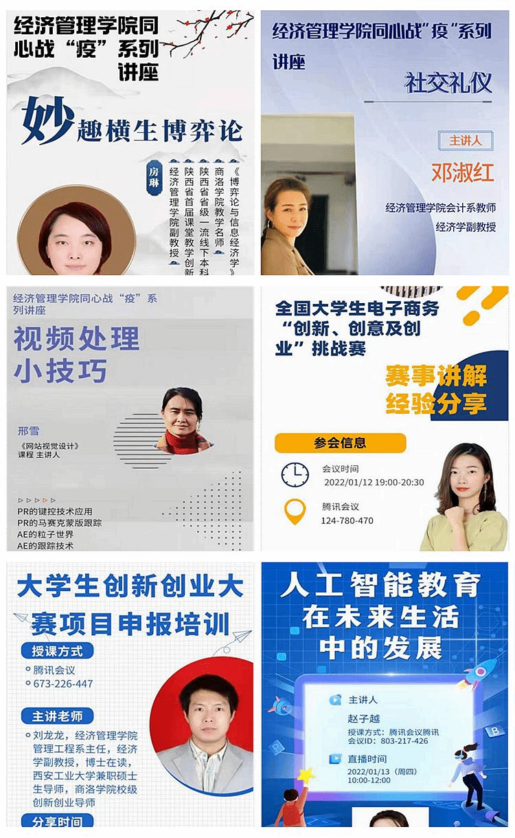 開展公益講座,倡導師生健康生活學習。學院圍繞疫情防控要求和學院專業(yè)特色,持續(xù)推出師生關(guān)注度高的科普教育、文獻檢索、趣味經(jīng)濟學、個人理財、學科競賽等公益講座,倡導師生樹立科學健康的生活學習方式。